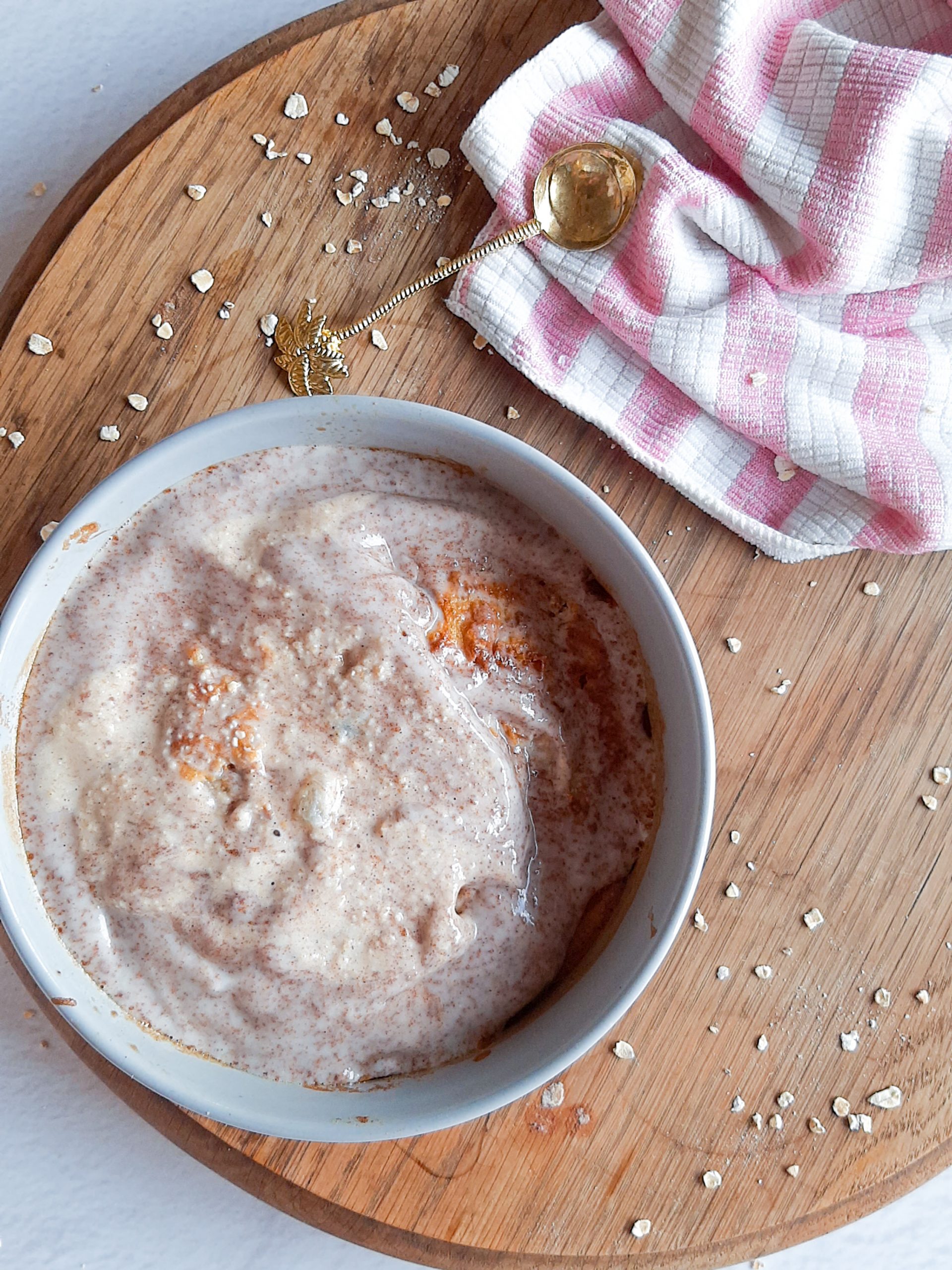 Gosh, baked oats are by far my favourite breakfast. They’re filling, aren’t a lot of effort to make, there are so many combinations and it literally tastes like cake; what’s not to love?! I decided to share my fave apple pie baked oats with a yummy yogurt topping which can also be switched out for custard because YOLO. My fave is the Ultra-Mel Zero, and I am very generous with it!